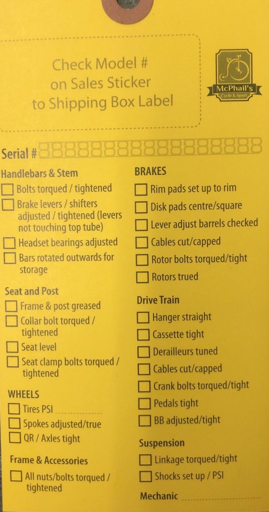 We are pleased that McPhail’s Cycle & Sport in Waterloo has been an ongoing partner in our Bike Rodeo and has checked and tuned many of our young participants bikes over the years. As an essential business they have been busy keeping cyclists going. We are happy to share the checklist they use when getting bikes ready for their customers. You may find this useful if you want to do a more complete tuning of your bike.